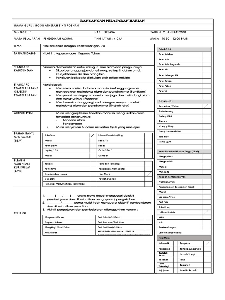 Download Rpt Pendidikan Moral Tingkatan 3 Terbaik Templat Rancangan Pengajaran Harian Rph Pembelajaran Abad Ke 21 Skoloh